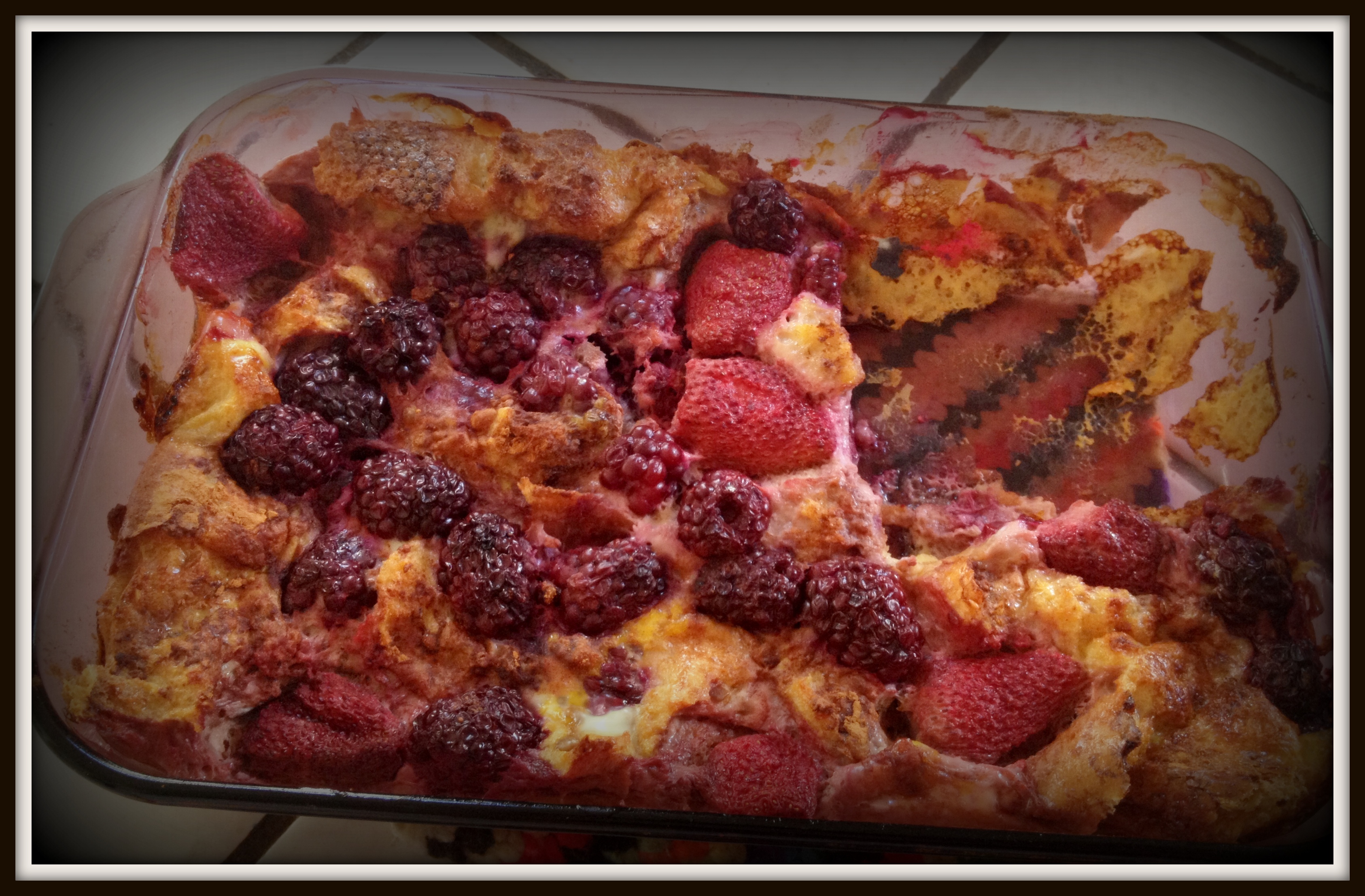 Bake the casserole at 375F for about 40-45 minutes or until the bread is toasted on the outside. Feel free to bake a little less or more depending on how you like it…. I personally like the outside to be toasted but the middle to still be moist.