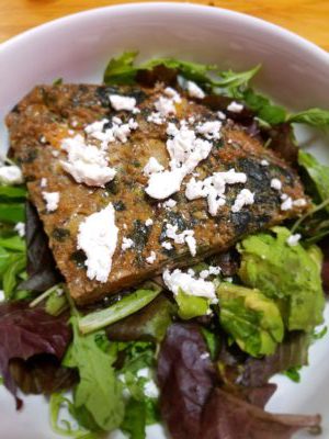 Eggs are also one of the original “super foods”. It is a complete protein, rich in healthy fats & nutrients like choline, lutein, Vitamin A and more. The veggies & spices give it an “autumn flavor”. I love mine served warm on spring mix, topped with goat cheese & avocado!
