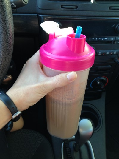 Add your liquid ingredients to your blender or magic bullet, then add your dry. Blend and enjoy! I usually like to blend some ice with the shake, and then serve this over ice to feel like I’m drinking a Starbucks iced coffee 🙂