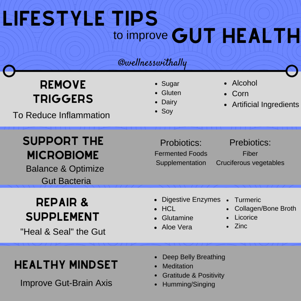 It is important to pay attention to our lifestyle triggers and make sure we are reducing STRESS any means we can. It also is important that once we have healed the gut, we can maintain its health and prevent future issues.