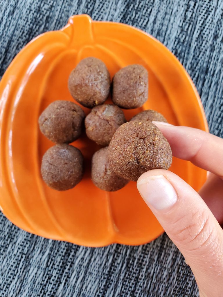 These no-bake little pumpkin pie bites are the perfect little treat! They’re slightly sweet and a tad “spicy” with the different pumpkin and fall flavors. They’re great for the whole family and very easy to make as well. They’re grain and gluten free, dairy free, sugar free, low carb and Paleo approved!