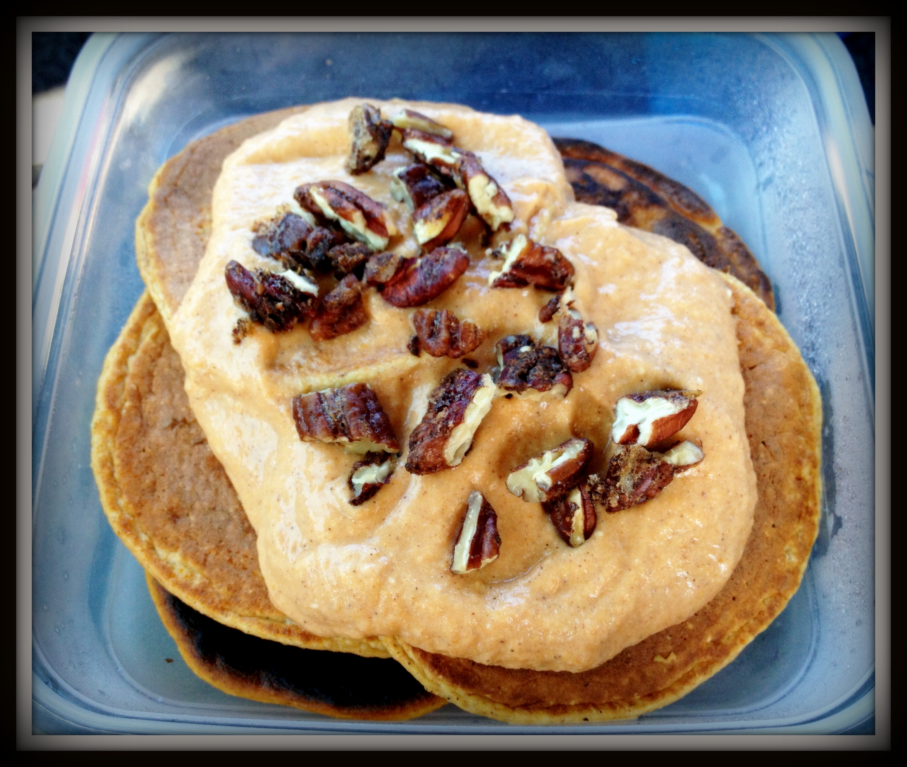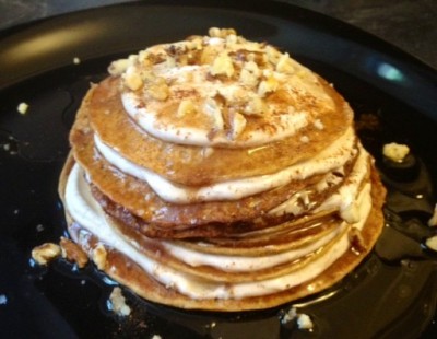 These pancakes are the perfect Fall breakfast…they are moist, full of flavor, and totally clean! This is using my basic protein pancake recipe and instructions (click here for the original and directions) but I substituted 1/3 the cottage cheese for canned pumpkin puree.