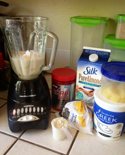 - BCAA (amino acid) powder (helps muscle recovery and growth)Blend…blend…blend…an